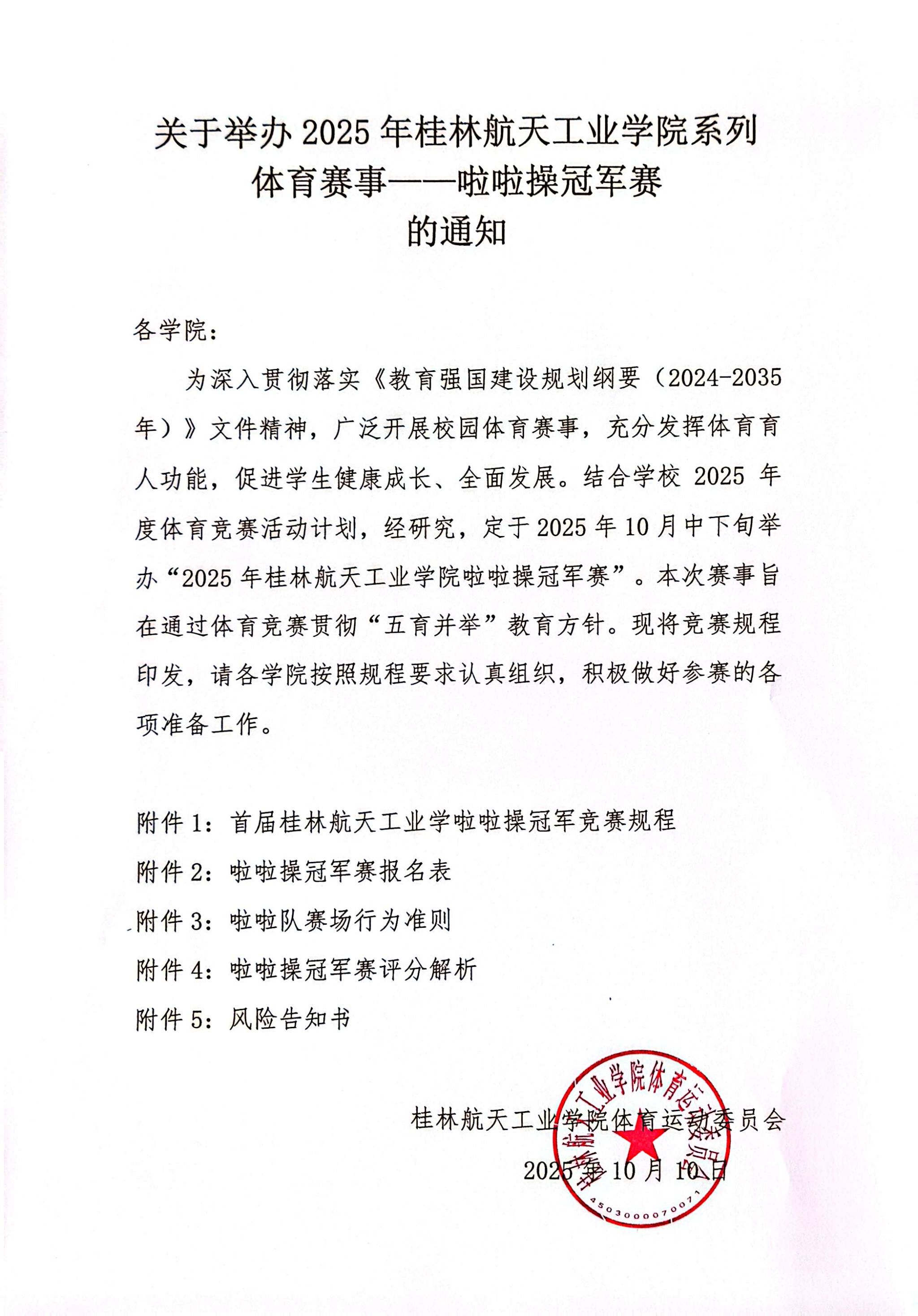 关于举办2025年桂林航天工业学院系列体育赛事——啦啦操冠军赛的通知