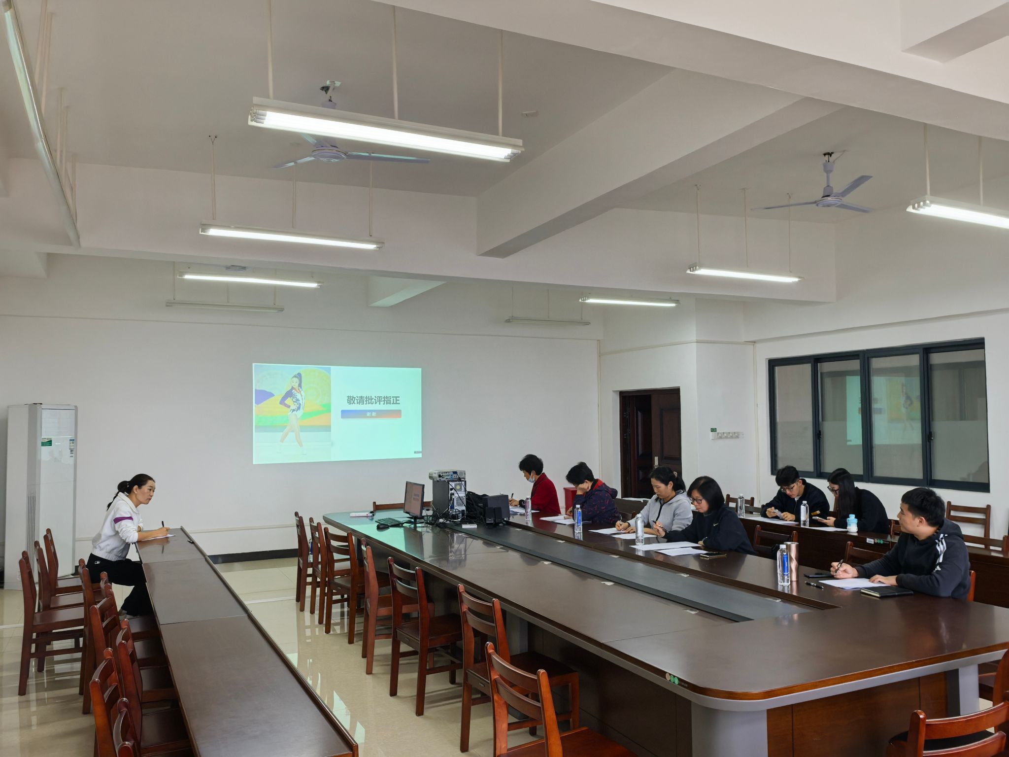 为备战学校2025年课程思政说课比赛,进一步巩固首轮磨课成效,体育部于11月7日上午组织开展了第二轮磨课活动。本次活动延续“以赛促教、以研促新”的宗旨,聚焦教学优化与思政融合,持续助力教师教学能力提升。活动由体育部副主任马世文主持,部门教学督导张萍、黄柳倩、陈惠娜、梁莉参与指导。