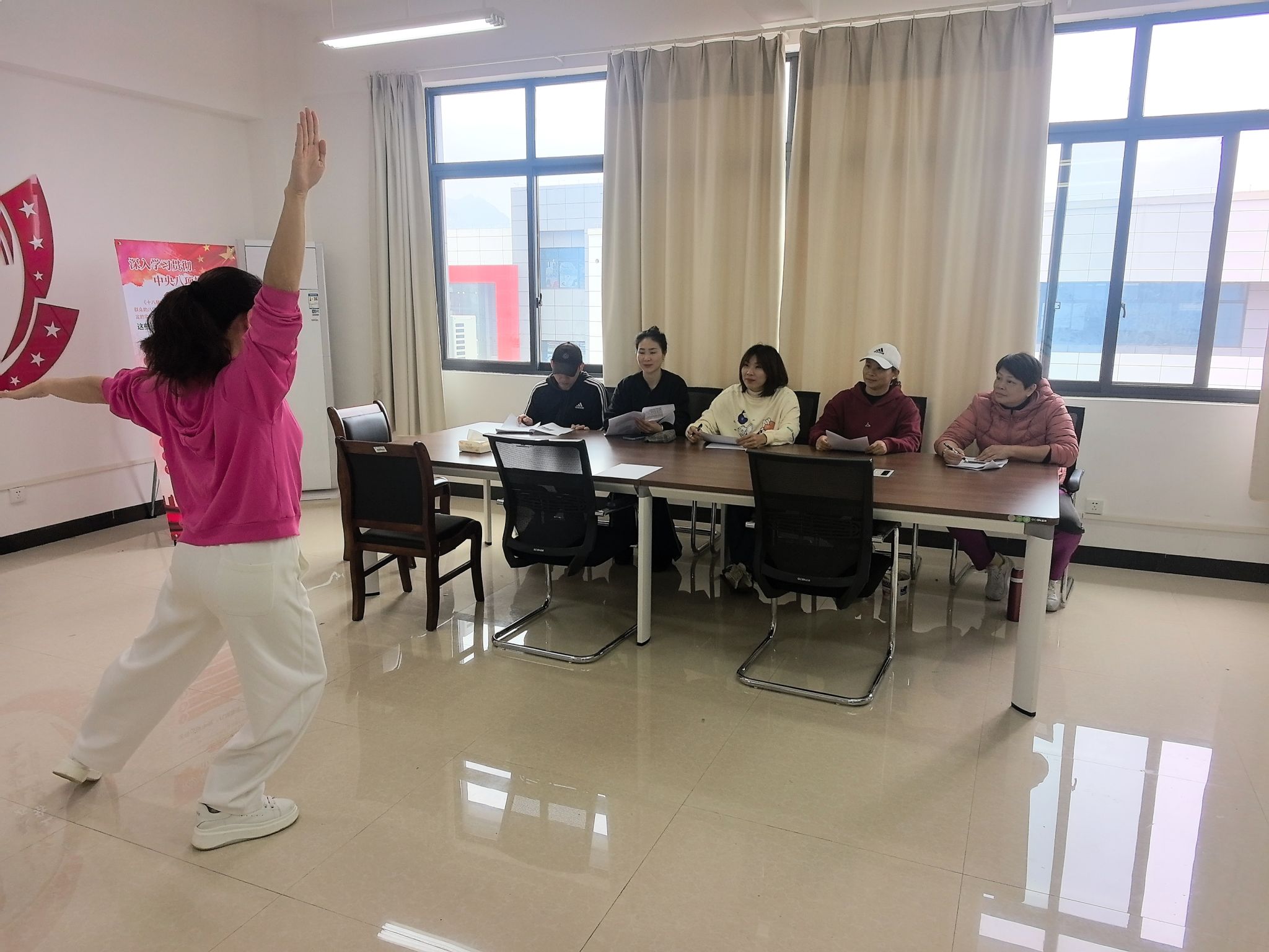 为进一步深化体育教学改革,充分展现学校阳光体育的丰硕成果,11月6日上午,一场以“舞动青春·展现自我”为主题的健美操公开课在体育部综合教研室精彩上演。本次公开课由李文霞老师执教,综合教研室全体教师到场观摩。